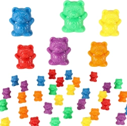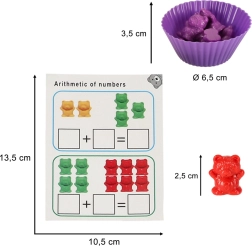 36 barevných medvídků v 6 barvách motivuje děti k třídění, sčítání a porovnávání. Ideální pro první matematické krůčky formou hry.