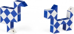 Tato legendární skládačka RUBIK nabízí nekonečné kombinace díky dvěma hadům (2× 24 hranolů), které lze mezi sebou spojovat. Flexibilní segmenty se snadno otáčejí a umožňují skládat plynulé i geometrické tvary. Modro-bílé provedení je přehledné, odolný plast zaručuje dlouhou životnost a hladký chod.