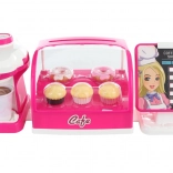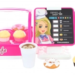Užijte si zábavu s velkou dětskou kavárnou, která nabízí kávovar, chladničku s dortíky a pokladnu, vše na baterie.
