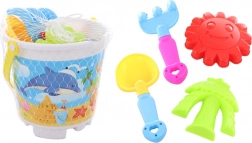 Dopřejte dětem spoustu zábavy na pískovišti i na pláži. Kompletní sada s kyblíkem o výšce cca 17 cm nabídne vše potřebné pro stavění hradů a tvoření tvarů – od lopatky a hrabiček až po dvě bábovičky. Praktické síťkové balení usnadňuje přenášení i sušení po hře.