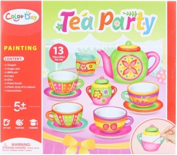 Navrhni a vybarvi si svůj vlastní keramický čajový set. Obsahuje konvičku, hrnečky s podšálky, džbánek a cukřenku, s barvičkami a štětcem. Ideální pro kreativní děti od 5 let.
