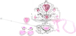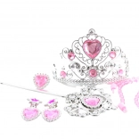Tato sada obsahuje korunku zdobenou růžovými srdíčky, náušnice, náhrdelník a prsten, které váš malý šlechtic ocení.