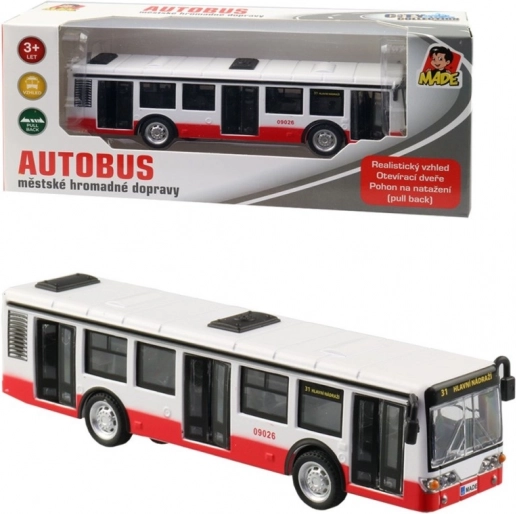 Udělejte radost malým milovníkům dopravních prostředků. Tento kovový autobus v oblíbené červeno‑bílo‑černé kombinaci vychází z designu známého z městské hromadné dopravy. Díky otevíracím dveřím a zpětnému chodu přináší spoustu zábavy a podporuje kreativní hru.