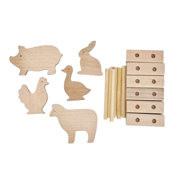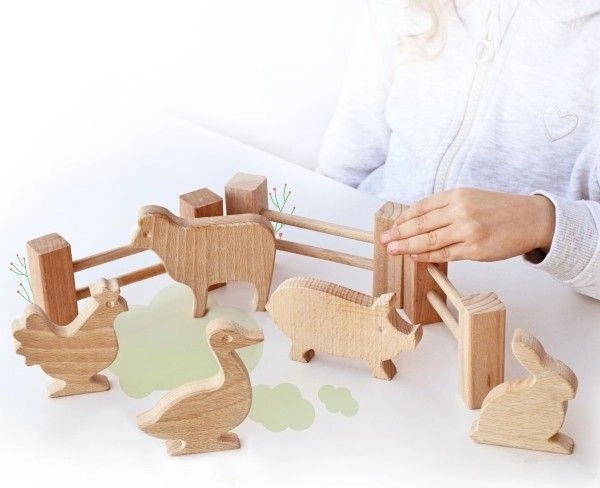 Tvořivá farma ze 17 dřevěných dílků