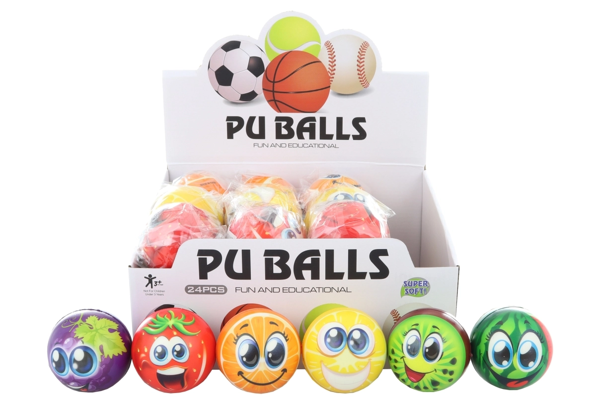 Roztomilý a bezpečný míček s motivem ovoce potěší děti od 3 let. Díky průměru cca 7 cm se dobře drží v ruce, je měkký, lehký a vhodný pro hraní doma i venku.