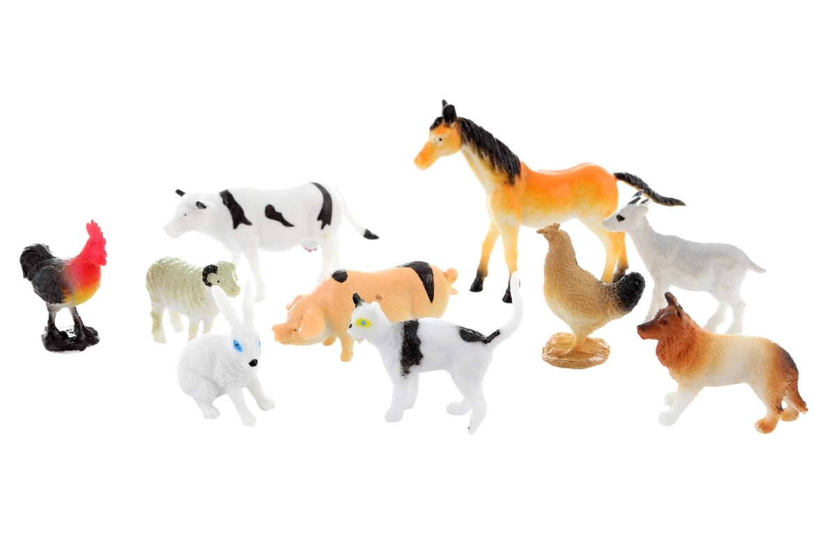- Co najdete v balení: kůň, pes, kočka, slepice, kohout, kráva, beran, koza, prase, králík (celkem 10 ks)