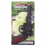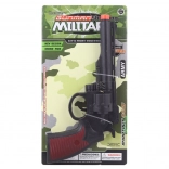 Zábavný plastový revolver pro malé pistolníky, který při stisku spouště vydává realistické zvuky. Bez nutnosti baterií, snadné používání a bezpečná hra od 3 let.