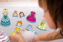 Pozvěte si do koupelny princezny s touto úžasnou sadou vodolepek. Stačí je namočit a snadno se přilepí na vanu nebo obklady. Díky jednoduchému přesouvání a sundávání mohou děti tvořit nové příběhy každou chvíli.