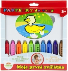 Pestrá sada deseti pastelek v unikátním designu Moje první zvířátka přináší do vaší koupelny kreativitu a legraci. Děti si mohou na vanu i obklady malovat, zatímco pastelkami vytvářejí svá umělecká díla.