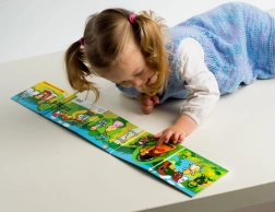 Leporelo Moje první pohádky je navržené pro nejmenší děti. Pevné kartonové listy a přehledné ilustrace usnadňují prohlížení, pojmenovávání a sdílení zážitků s rodiči. Děti si formou hry rozvíjejí slovní zásobu, fantazii i jemnou motoriku při otáčení stránek.