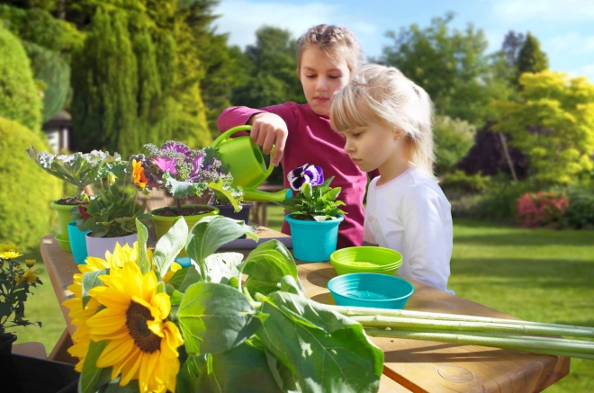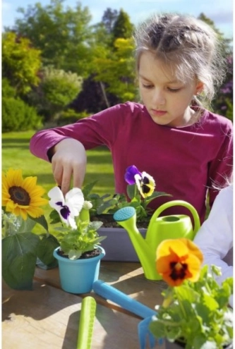 S touto sadou se děti mohou naučit základům zahradničení a zároveň se bavit venku při pěstování vlastních rostlinek v barevných květináčích.