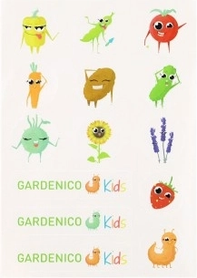Sada zahrnuje samolepky Gardenico Kids, které podporují kreativitu a pomáhají dětem učit se o rostlinách hravou formou.