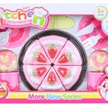 V balení najdete realistický dort o průměru cca 15 cm, který lze „krájet“ a znovu skládat, dále dva hrnečky, dva talířky, malé dortíky a příbory pro kompletní servírování. Celé balení má rozměry cca 35 × 24 × 7 cm, díky čemuž je sada snadno přenositelná a vhodná i na cesty.