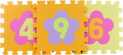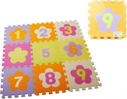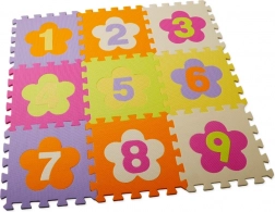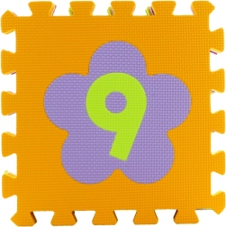 Barevné pěnové puzzle s číslicemi a vyjímatelnými dílky vytváří měkkou a bezpečnou hrací podložku pro děti od 3 let. Díly o rozměru 28 × 28 cm se snadno propojují, mají vroubkovaný protiskluzový povrch, jsou omyvatelné, tlumí hluk a izolují od chladu. Balení obsahuje 9 čtvercových dílů.