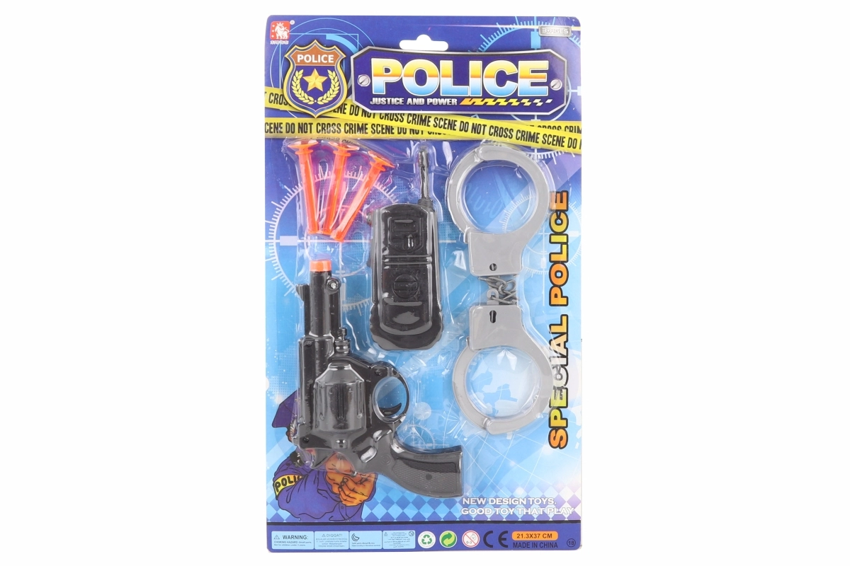 - Plastová pistole na přísavky, 3 náboje s přísavkou, vysílačka, pouta