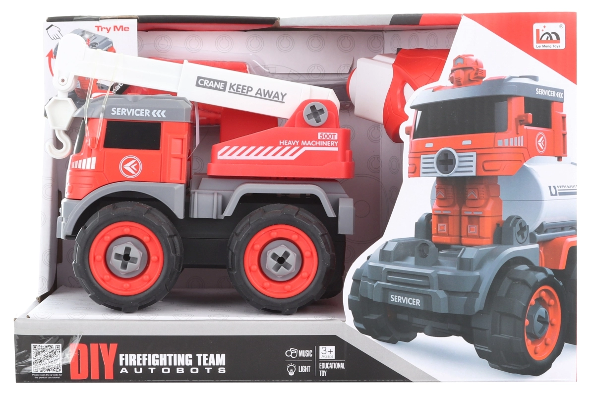 Zábavná stavebnice a RC hračka v jednom: šroubovací hasičské auto, které lze pomocí přiloženého nářadí složit, ovládat dopředu i dozadu a dokonce transformovat na robota. Díky vyjímatelnému motorku z vrtačky, světelným efektům a zvukům nabízí dětem od 3 let hodiny kreativní hry. Šroubování a stavění, dálkové ovládání, transformace na robota, světla a zvuky a praktické napájení z něj dělají skvělý dárek.