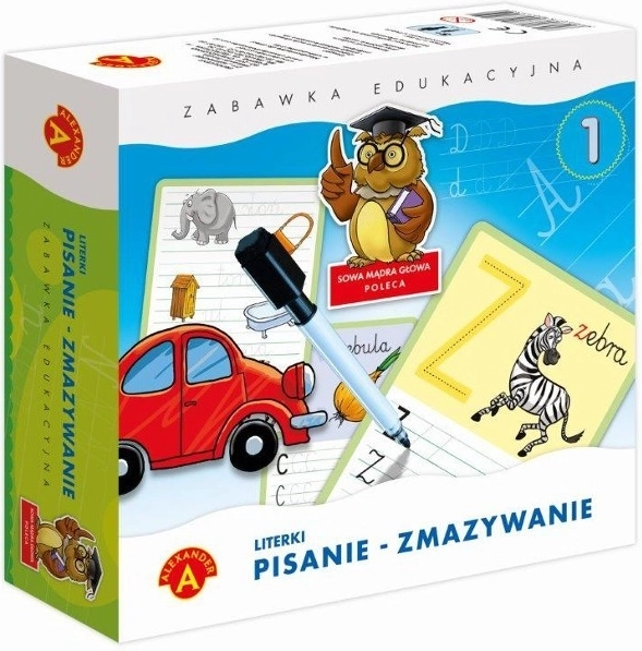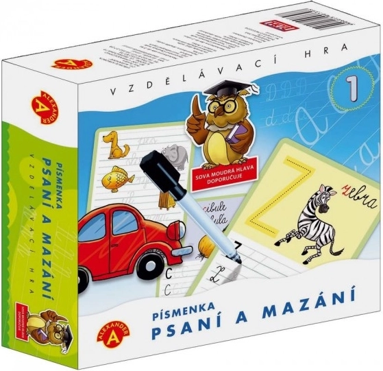 Interaktivní sada Alexander psaní a mazání písmen pomáhá dětem osvojit si správné tahy a tvary písmen. Každé písmeno je doplněno obrázkem se stejným počátečním písmenem, což podporuje spojení zvuku, tvaru a významu a usnadňuje výuku čtení. Přerušované čáry vedou ruku a napomáhají správnému psaní.