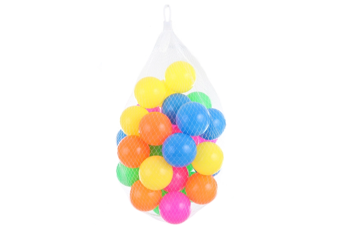 Zábavná sada barevných plastových míčků o průměru 6 cm v praktické síťce po 30 kusech. Ideální do dětských bazénků, suchých bazénů, herních koutků i pro domácí hraní. Lehoučké, bezpečné a vhodné od 3 let.