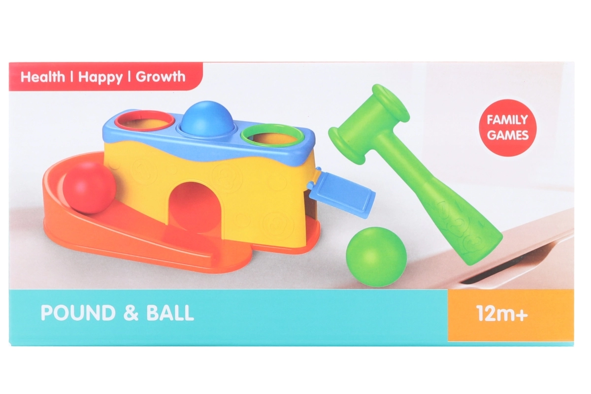 Zábavná plastová zatloukačka s dráhou rozvíjí jemnou motoriku, koordinaci oko–ruka a vnímání barev. Součástí jsou 3 míčky a kladívko, po úderu se míčky skutálejí po zábavné dráze. Ideální hračka pro nejmenší od 1 roku.