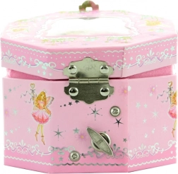 Kouzelná růžová šperkovnice s baletkou potěší každou malou parádnici. Po natažení klíčku se figurka baletky roztočí a zazní jemná melodie. Uvnitř najdete praktické zrcátko a prostor na drobné šperky či poklady. Ideální dárek pro děti od 3 let.