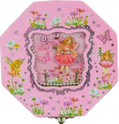 Tato půvabná hudební šperkovnice v růžovém provedení s pohádkovými motivy je perfektním místem pro uložení prstýnků, náušnic a dalších drobností. Po otočení klíčku se baletka ladně otáčí před zrcátkem a skříňka přehraje něžnou melodii.