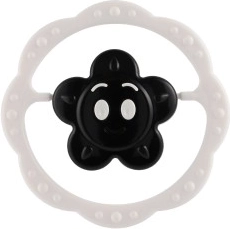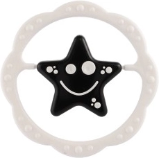 Texturované okraje fungují jako jemné kousátko pro zklidnění podrážděných dásní. Kontrastní motiv hvězdy/květiny uprostřed zaujme i velmi malé děti, které teprve trénují zaostřování. Hračka je vyrobena z kvalitního plastu a je vhodná pro každodenní používání doma i na cestách.