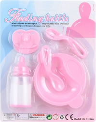 Sada doplňků pro panenky ideální pro hry na maminku, obsahuje lahvičku, dudlík, talířek a příbor. Perfektní doplněk pro každou malou pečovatelku.