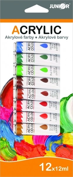 Univerzální sada akrylových barev pro kreativní tvorbu na různé povrchy. Obsahuje 12 jasných odstínů po 12 ml, které lze ředit vodou a používat na papír, lepenku i plátno. Vhodné také pro dekorování keramiky, skla a kamene. Ideální pro začátečníky i děti od 3 let.
