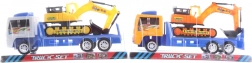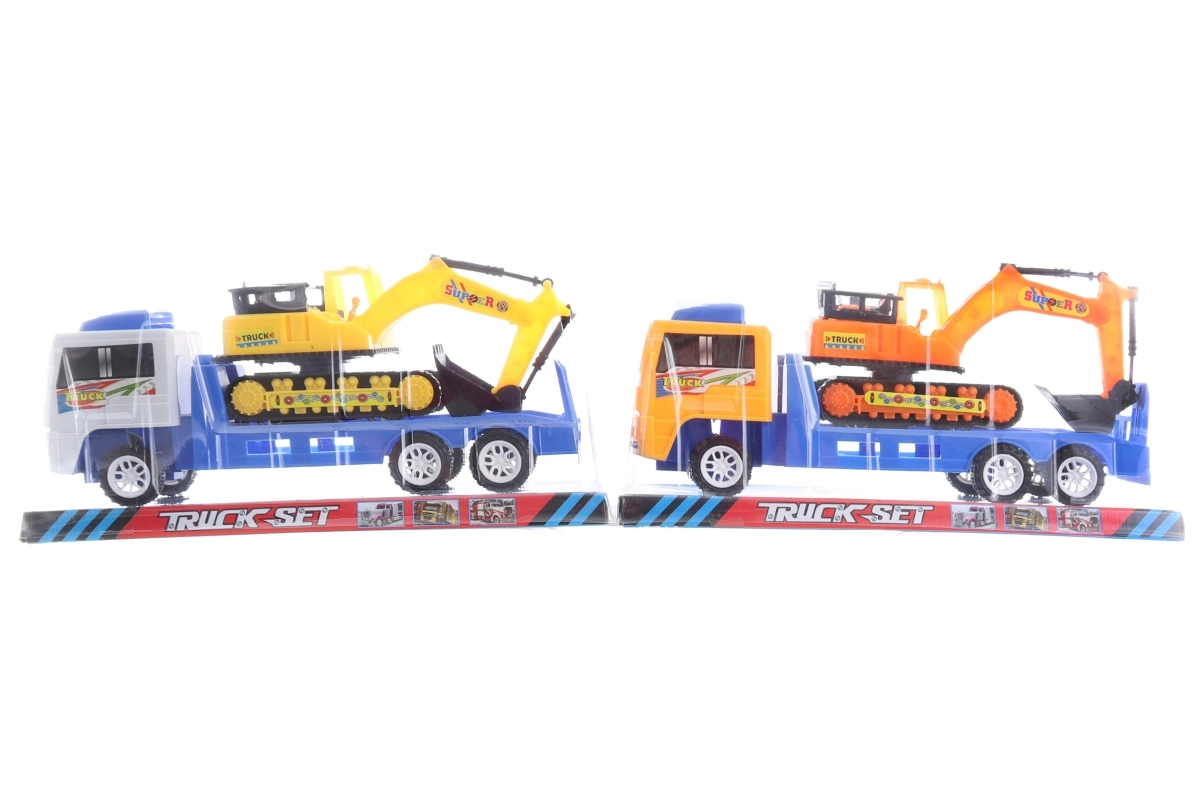 Zábavná stavební sada pro malé stavitele: plastový kamion s bagrem o délce cca 25 cm. Ideální pro děti od 3 let, podporuje rozvoj motoriky, kreativní hru a představivost. Kompaktní rozměry a lehká konstrukce zaručují snadné ovládání i přenášení.