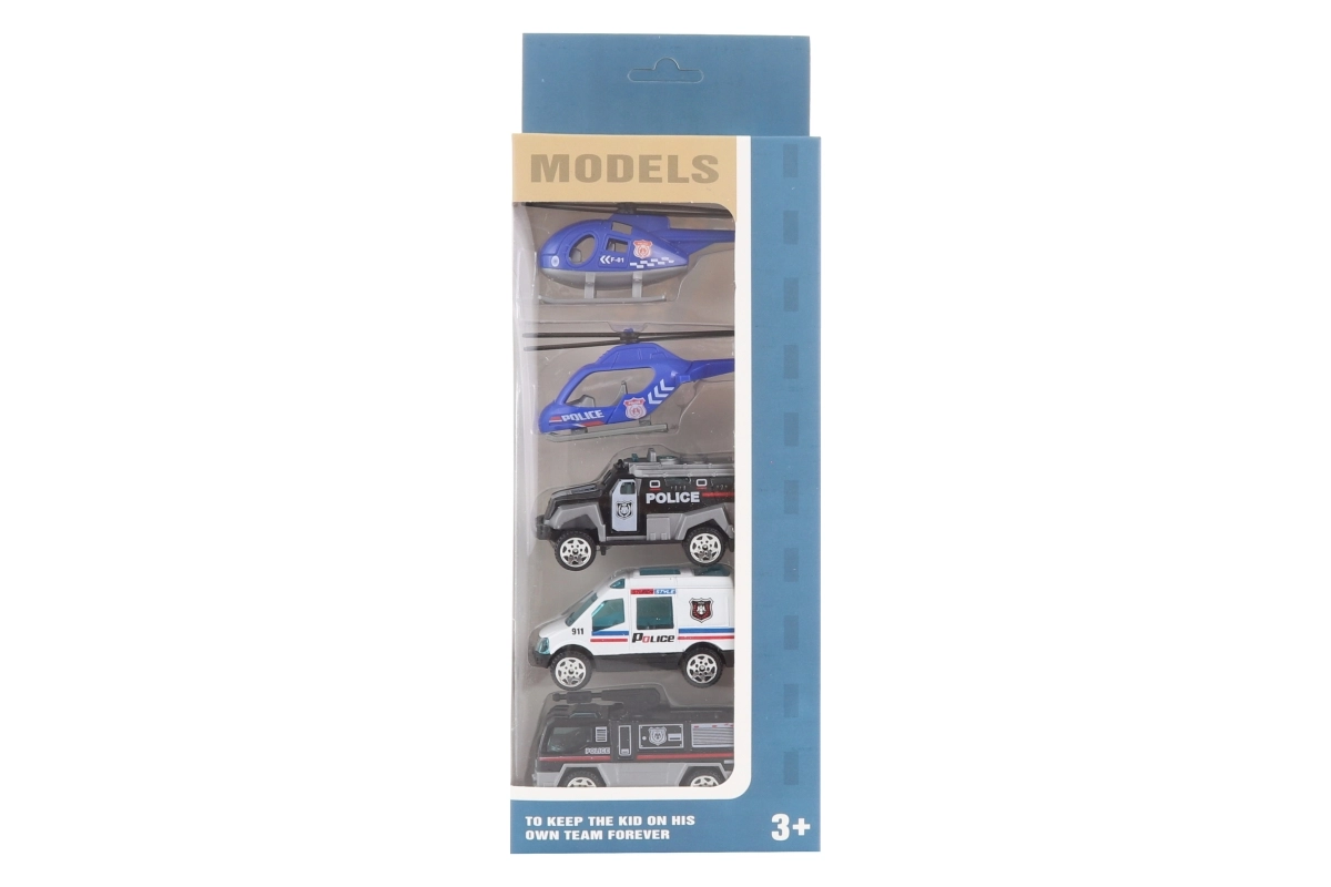 Objevte akční zábavu se sadou policejních kovových aut, která obsahuje 2 helikoptéry a 3 auta. Ideální pro malé fanoušky záchranných složek od 3 let. Kompaktní balení s rozměry 10 × 27 × 3,5 cm je skvělé na cesty i jako dárek.