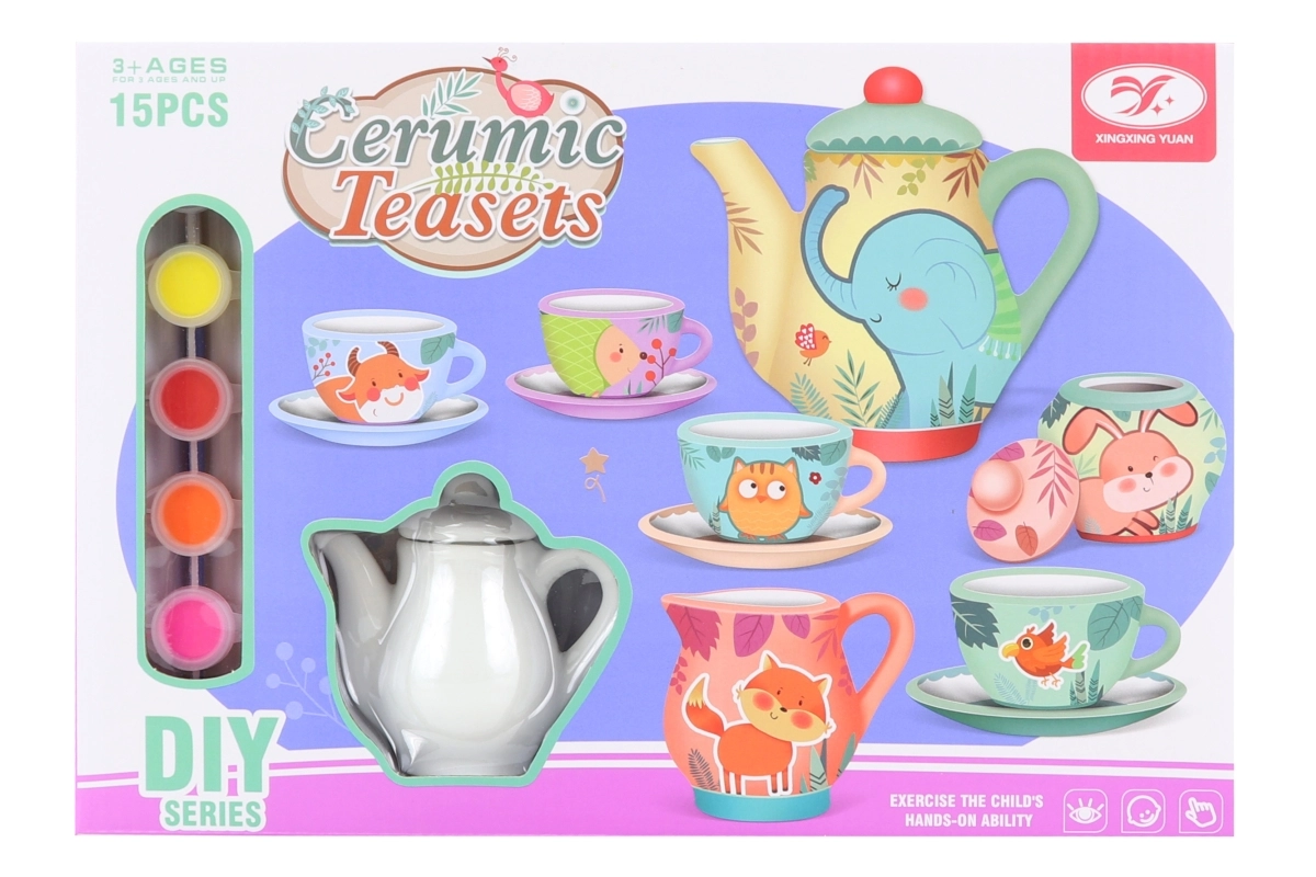 Kreativní malovací čajový set pro malé umělce přináší hodiny zábavy a rozvoje fantazie. Děti si mohou vlastními barvami ozdobit konvičku, šálky s podšálky, mlékovku a cukřenku. Součástí jsou i barvy a štětec, takže můžete začít ihned tvořit. Podporuje kreativitu, jemnou motoriku a originální dětskou tvorbu.