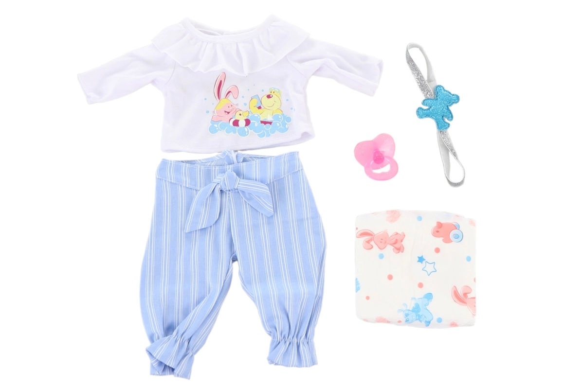 Stylové oblečení pro panenku o velikosti 45 cm, ideální pro každodenní hraní i speciální příležitosti. Pomáhá rozvíjet dětskou fantazii, jemnou motoriku a péči o panenku. Kvalitní zpracování a snadné oblékání zaručí radost z každé hry.