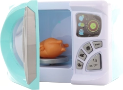 Tato dětská mikrovlnka v kombinaci tyrkysové a bílé barvy je ideální doplněk do každé dětské kuchyňky. Po zapnutí se talíř uvnitř otáčí a hra je doprovázena světelnými efekty, které věrně napodobují skutečný spotřebič.