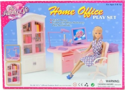 Stylový kancelářský set pro panenky GLORIE promění každý pokojíček v kreativní pracoviště. Obsahuje psací stůl s počítačem, tiskárnou a lampou s nastavitelnou výškou, židli a knihovnu. Skvělé doplňky pro realistickou hru, kvalitní zpracování a bohatá výbava potěší každé dítě od 3 let. Panenka není součástí balení.