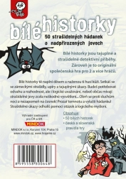 Vstup do světa zámeckých strašidel, upírů a tajuplných jevů. Bílé historky tě přimějí přemýšlet, klást chytré otázky a hledat překvapivá vysvětlení. Každá karta skrývá příběh, který odhalíš pomocí dedukce a spolupráce – někdy má i nejděsivější událost zcela neškodné rozuzlení.