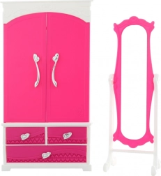 Šatní skříň GLORIE se zrcadlem je skvělým doplňkem do světa panenek. Nabízí otevírací dvířka a zásuvky pro uložení šatiček a doplňků a praktická ramínka pro pověšení oblíbených outfitů. Díky přiloženému zrcadlu mohou děti snadno kombinovat a zkoušet nové stylové kreace.