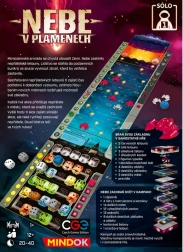 V Nebi v plamenech přebíráte roli velitelů poslední obrany Země. Zatímco oblohu zaplavují nepřátelské letouny, lidstvo se skrývá v bunkrech a horečně pracuje na tajné zbrani. Vyvažujte riziko a odměnu: vyšší hod kostkou přináší silnější akci, ale zároveň posouvá invazní flotilu blíž k městu.