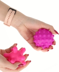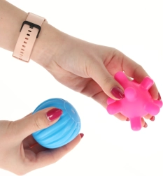Míčky jsou vhodné pro hraní na suchu i ve vodě. Textury se hodí pro jemnou masáž dlaní a chodidel a přinášejí uklidnění.