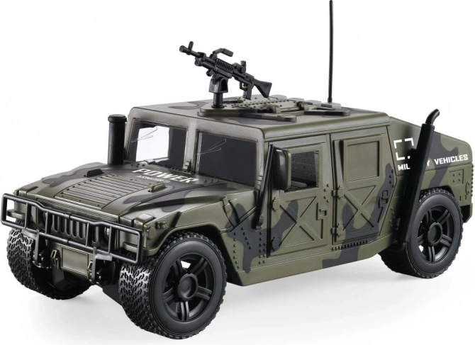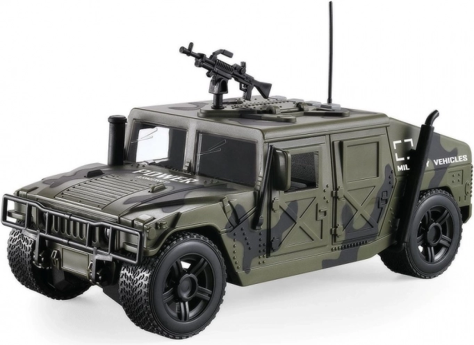 Detailní zpracování připomínající obrněné vozidlo s robustními koly a doplňky na střeše zaručuje dlouhou zábavu.