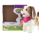 Roztomilý interaktivní pejsek se šátkem reaguje na potlesk – po tlesknutí se rozeběhne a začne štěkat, po chvíli se sám zastaví. Ideální hračka pro děti od 3 let, která podporuje zábavu i rozvoj smyslů.