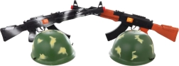Zábavná dětská sada pro malé vojáky obsahuje rachotící plastový samopal o délce cca 53 cm a vojenskou helmu s vnitřním průměrem cca 18,5 cm. Skvělá volba pro hra na vojáky, rozvoj fantazie a akční dobrodružství. Vhodné pro děti od 3 let.