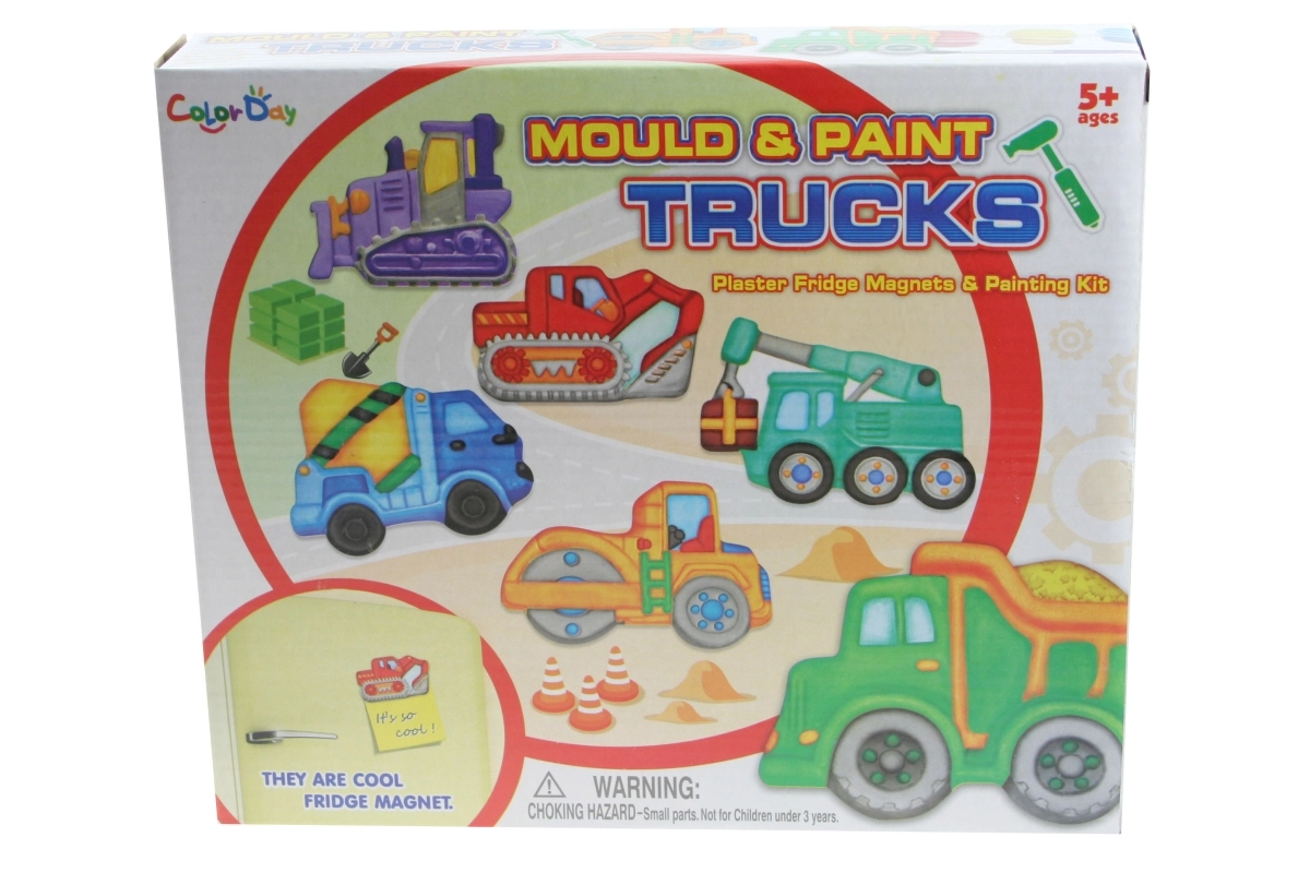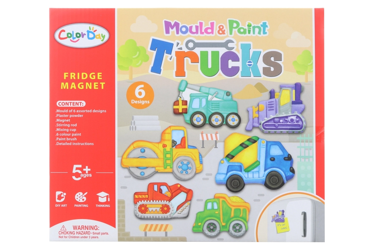 Proměňte tvoření v dobrodružství na stavbě. S touto sadou si děti odlijí magnetky ze sádry do formy se 6 motivy stavebních aut, vybarví je přiloženými barvami a pomocí magnetů z nich vytvoří veselé dekorace na lednici nebo magnetickou tabuli.