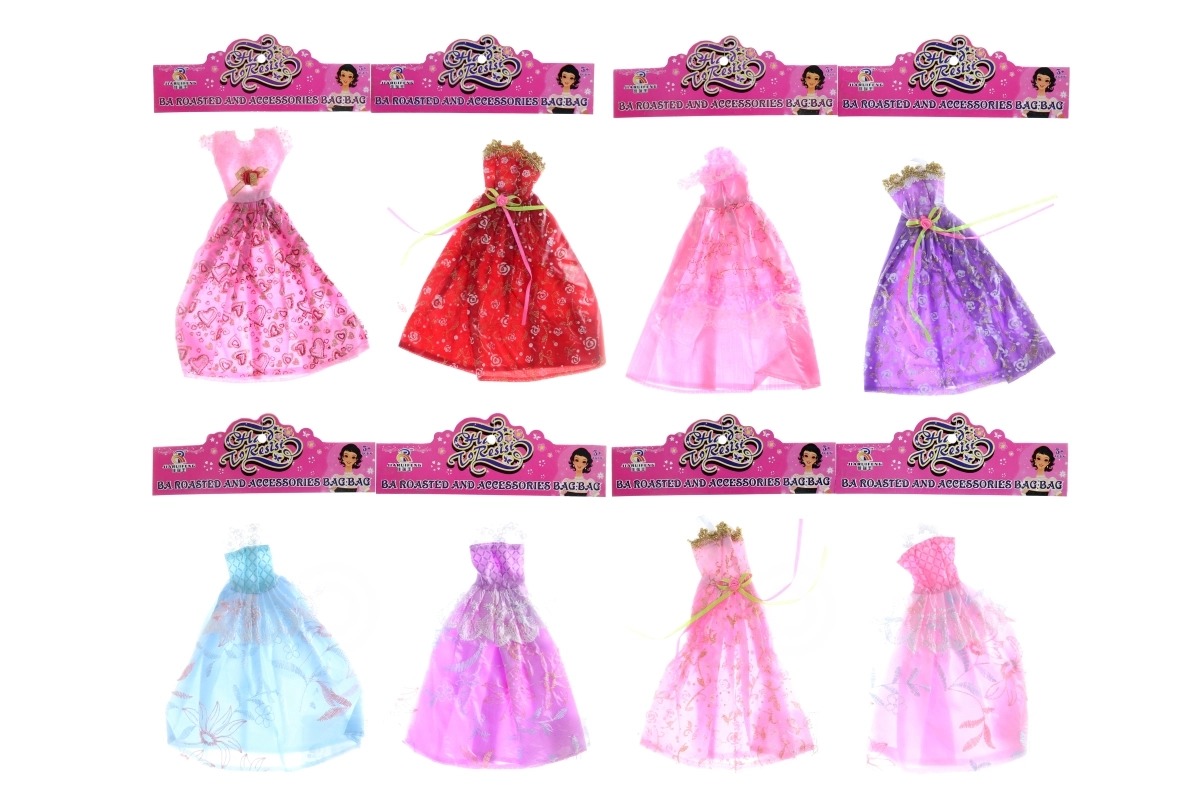 Dopřejte své panence elegantní převlek s těmito plesovými šaty pro panenku o délce cca 22 cm. Každý kus je originál v mixu barev a vzorů, snadno se obléká a je ideální pro tvůrčí hru a převlékání. Baleno v plastovém obalu. Ilustrační foto – barevné provedení se může lišit dle skladových zásob.