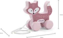 Roztomilá dřevěná tahačka ve tvaru lišky podpoří první krůčky a rozvoj motoriky vašeho dítěte. Kompaktní rozměry, kvalitní dřevo a hladké zpracování zaručují bezpečné a zábavné hraní. Ideální hračka pro věk 18 měsíců+ s pevnou šňůrkou pro tahání a stabilními kolečky.