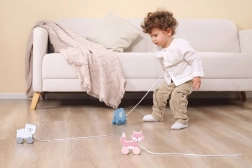 Díky pohyblivým kolečkům a možnosti tahání hračka podporuje fyzický rozvoj a koordinaci.