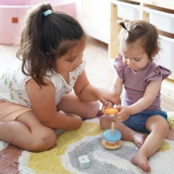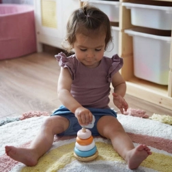 Vložení kroužků na podložku nejen že přináší dětem radost, ale zároveň rozvíjí jejich koordinační schopnosti a logické myšlení. Děti se také učí rozpoznávat barvy a pracovat s různými tvary.