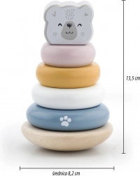 Dřevěná vzdělávací pyramida s motivem Ledního medvěda je ideální hračkou pro nejmenší. Tato pyramida je vybavena šesti kroužky různých velikostí a barvách, včetně jednoho hlavního kroužku s hlavou medvěda. Díky odolné dřevěné konstrukci je hračka nejen bezpečná, ale také odolná.