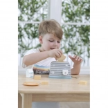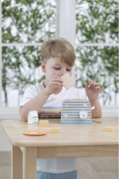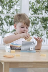 Dřevěný toustovač je navržen tak, aby dětem poskytl bezpečnou a zábavnou formu hry na kuchyň. S jednoduchým designem a odolnou strukturou je ideální pro imaginační hry a rozvoj motorických dovedností.