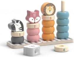 Tato skládačka se stane oblíbenou hračkou pro malé děti. Pomáhá rozvíjet motorické dovednosti a učí děti počítání a třídění. Díky krásně zpracovaným zvířátkům si děti hračku oblíbí a rády se k ní budou vracet. Celý produkt je vyroben z kvalitního dřeva, což zajišťuje jeho trvanlivost a bezpečnost při hře.