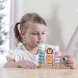 Zvířecí motivy a číselné kroužky podporují učení čísel a barev zábavným způsobem.